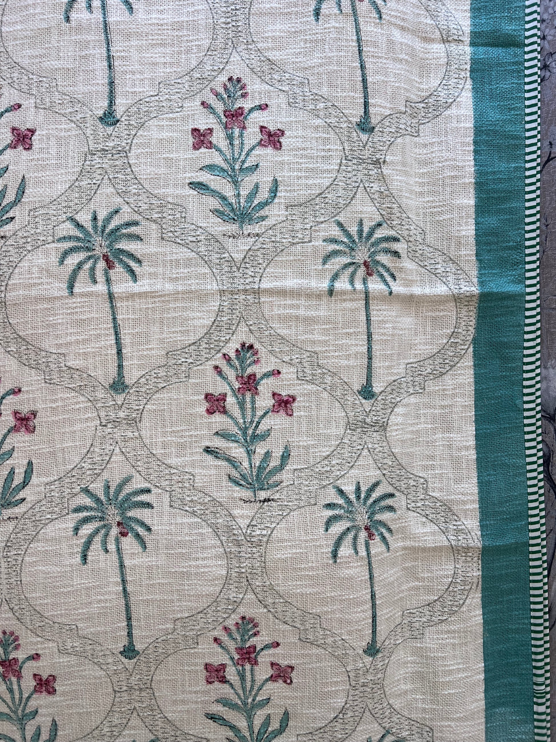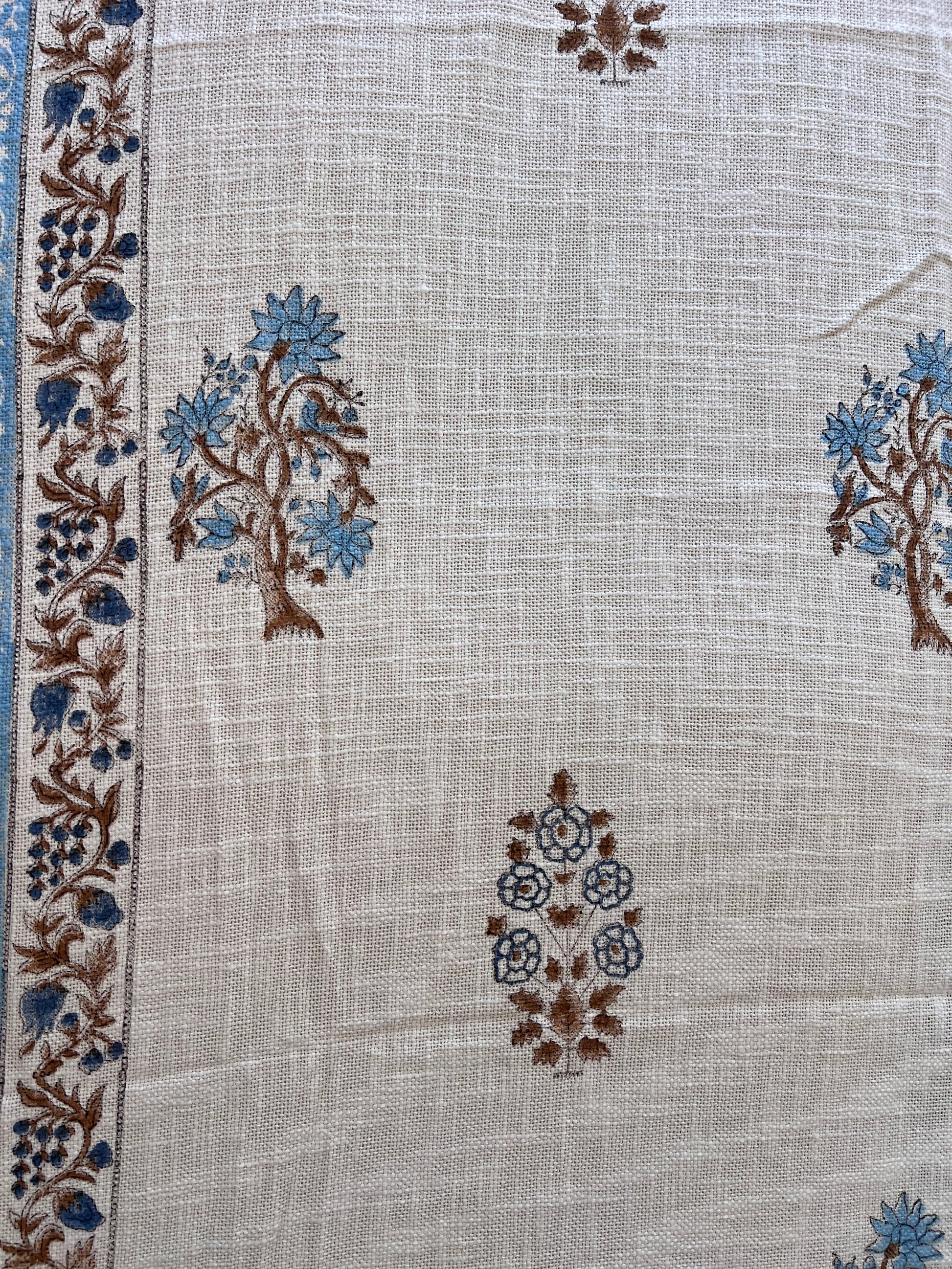 Our cotton throw features durable cotton based slub weave fabric with hand-block printed piping around the edges, combining quality materials and artisanal craftsmanship. Its generous size and breathable cotton make it ideal for adding warmth and style to any living space. The handprinted piping detail enhances its aesthetic appeal, offering a refined finish that complements various decor styles.